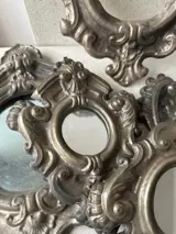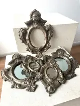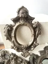 Groep van 5 antieke metalen lijsten met reliëf van verschillende afmetingen.