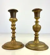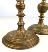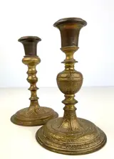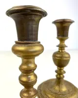 Paar antieke kandelaars gemaakt met bokaalvoeten.