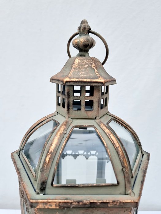Kandelaar, Lantaarn - Glas, IJzer (gegoten/gesmeed), Messing