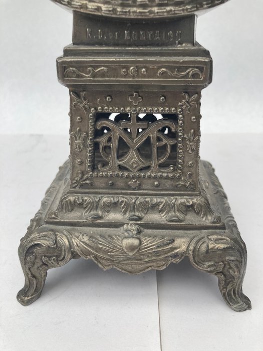 Zeer fraaie antiek spelter gegoten en gesmede Maagd Maria,