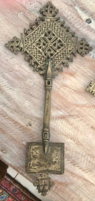 Jemenitische zilveren kruis; lokale ambachten; mooi snijwerk en inlays; 28,5 cm lang; Oosterse religieuze symbolen en voorstellingen; unieke en zeldzame stukken; verkocht in een set van 4 verschillende stukken.