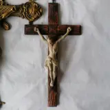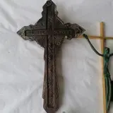 Het kruisje is in hout en het corpus is in lood gegoten.