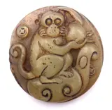 De aap wordt vaak afgebeeld met een perzik, de vrucht die onsterfelijkheid geeft, gestolen uit de tuin van Xi-Wang-Mu.