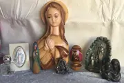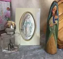 Een Maagd van Lourdes en een flesje met haar afbeelding