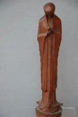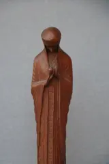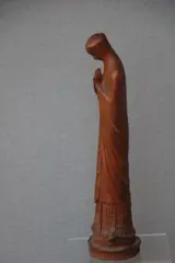 Kleine Madonna, Bauhaus stijl, begin jaren 1920-1925 gemaakt in Duitsland. Redelijke staat, klein deukje op het hoofd. Zie foto. Madonna staat op een halve maansikkel en slangen, heeft wereldbol in haar hand. Super fijn uitgewerkt.