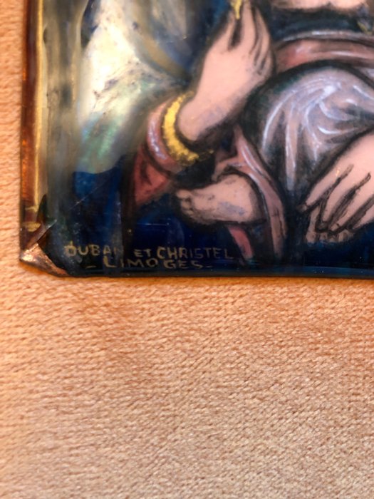 Limoges emaille icoon uit de jaren 50. Gesigneerd Dubas en Christel.