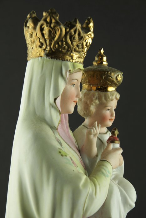 Wondermooie Maria met Kind in veelkleurig en verguld biscuit, Gräfenthal, tweede helft 19de eeuw.