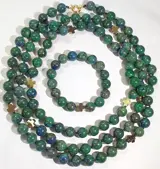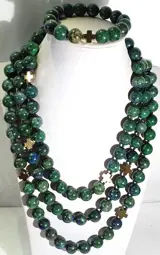 Ik bied ter veiling aan een exclusieve lange ketting en armband van vergulde hematiet Griekse kruisen (bescherming en balans) en grote azuriet-malachiet kralen van de hoogste kwaliteit; De grote sluiting is gemaakt van verguld 925 zilver.