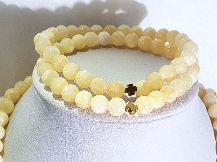 Ik bied ter veiling aan een exclusieve ketting en 2 armbanden van vergulde hematiet Griekse kruisen (bescherming & balans) en gele jade kralen van de hoogste kwaliteit. De hele ketting is met de hand gesponnen met knopen aan elk kruis en de sluiting is gemaakt van verguld 925 zilver (groot & massief).