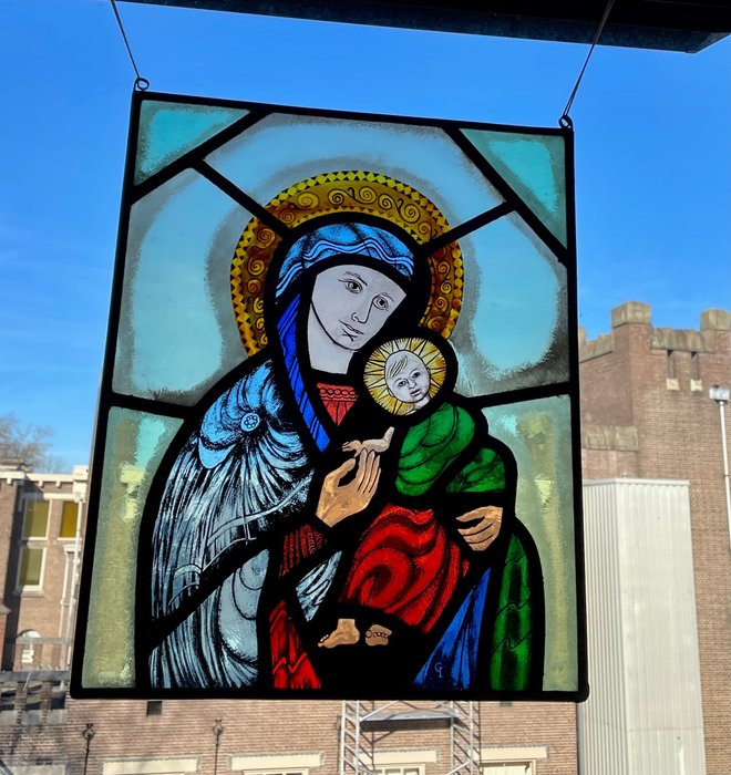 Oude Hand-gebrandschilderd raamstaand Amsterdamse school
