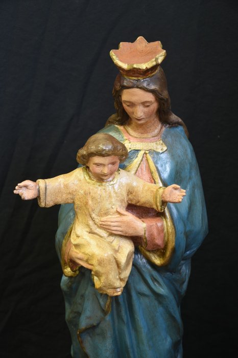 Prachtig beeld geheel met de hand bewerkt en beschilderd in polychroom gips