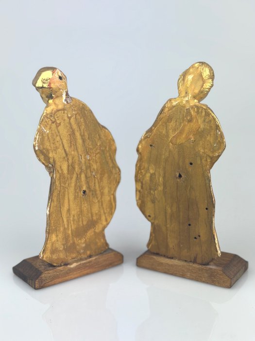 Paar antieke decoraties in houtsnijwerk en verguld met bladgoud.