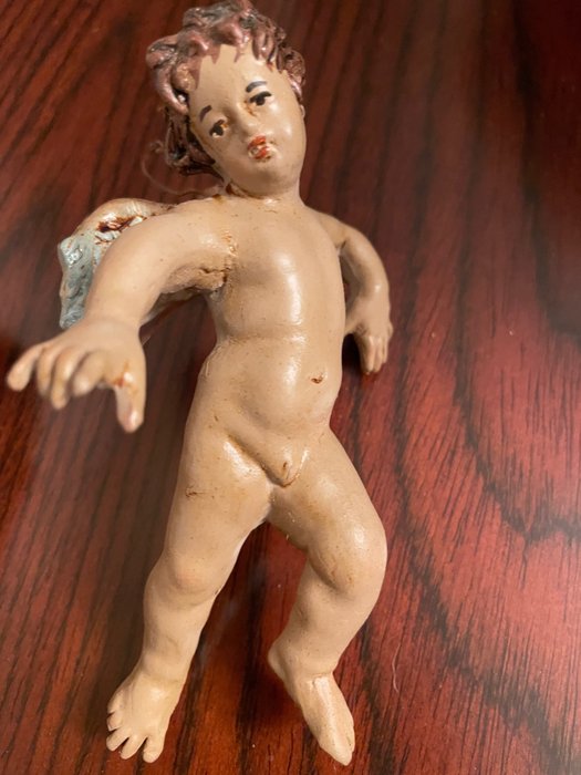 Triade di pastori antichi fine XIX secolo in terracotta di cui due putti piu' Bambin Gesu'