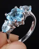 Prachtige geloofsring versierd met blauwe topazen - Gefacetteerd hart.