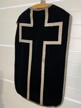 Prachtig Oude Zwarte fluwelen kazuifel met een binnenkant van zijde.