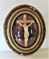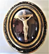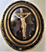 Religieus frame van gebogen glas (1) - Fluweel, Glas, Hout