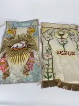 2 handgeschilderde doeken uit een kerk.