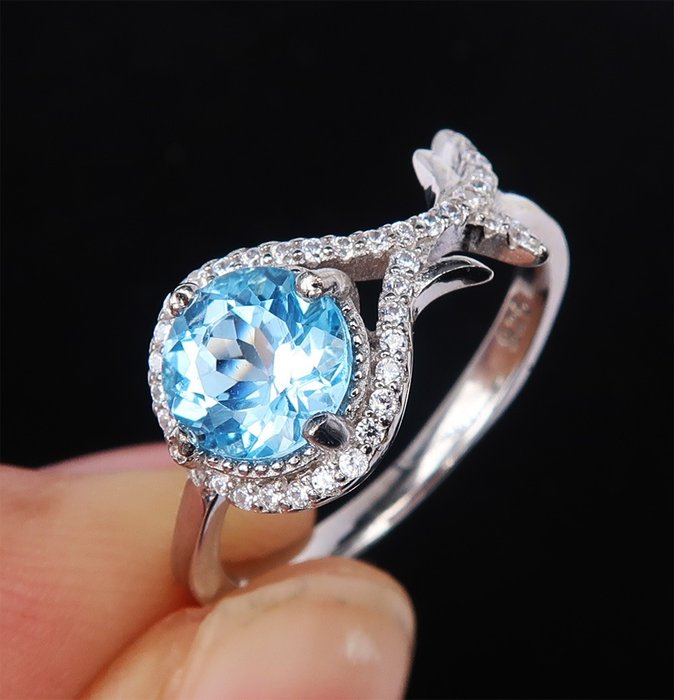 Faith ring vervaardigd in zilver versierd met een gefacetteerde blauwe topaas.