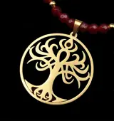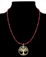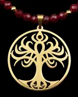 Robijn collier versierd met een levensboom - Spirituele energie.