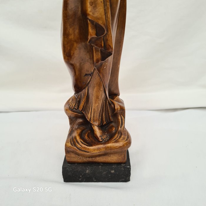 De voet bestaat uit een steensoort, vermoedelijk graniet, en het beeld zelf is een soort gepolijste gips (denk ik)