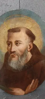 Olieverfschilderij op canvas op hout, uit het einde van de 17e eeuw, met het portret van "Sant'Antonio Abate". Noord-Italiaanse gebiedsschildering, met patina van tijd en oude polychromierestauraties. De heilige verschijnt met zijn handen op zijn borst, een aureool op een gedeeltelijk vergulde achtergrond.