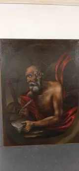 St. Jerome is de patroonheilige van studenten, archeologen, boekverkopers en bibliothecarissen Afmetingen: 114x87 cm.