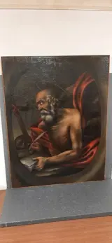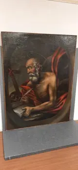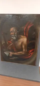 Olieverfschilderij op canvas uit het begin van de 18e eeuw met de afbeelding van "San Gerolamo". Schilderij van de Napolitaanse school met invloeden uit de Spaanse omgeving.