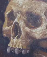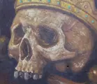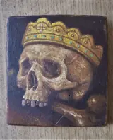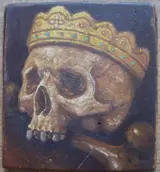 Interessant schilderij, gemaakt in olieverf op houten paneel, waarschijnlijk in de tweede helft van de 19e eeuw. Het komt uit de religieuze kringen van Salento (Zuid-Italië). Het vertegenwoordigt een schedel met een luxueuze kroon, een onderwerp gedefinieerd als "Vanitas", een symbool van de lage waarde van aardse heerlijkheden. Zowel het kleurgebruik als de penseelstreken zijn van grote kwaliteit. Let op, het object vertoont de onvermijdelijke tekenen van veroudering, maar geen ernstige beschadigingen die de schoonheid aantasten. Snelle en veilige verzending.