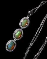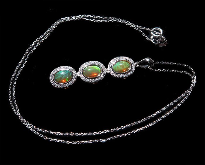 Schitterende hanger versierd met Welo-opalen en zijn massief zilveren ketting.