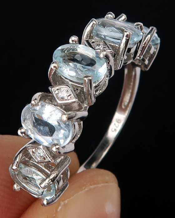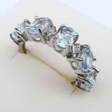 Sierlijke eternity trouwring versierd met aquamarijnen.