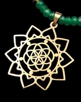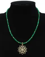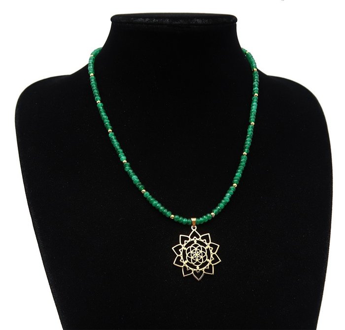 Smaragdgroene ketting versierd met een lotusbloem.