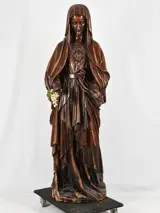 Een prachtig en levensgrote maria. Het beeld is waarschijnlijk afkomstig uit een kerk gezien de grootte. Mariabeelden van dit formaat zijn zeer zeldzaam.Het lijf van de maria is uit één stam vervaardigd.