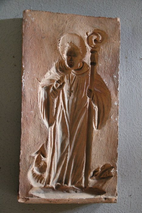 Gietvorm voor wassen beeldjes van Sint Magnus. De mal is van steen. Afmeting van de steen is 17.5 x 9.5cm.