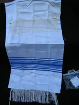 Tallit gebedssjaal Tallith judaica zijde wol brokaat Israël 1975 nieuw ongebruikt - Katoen