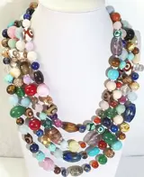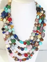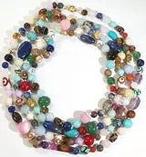 Gebruikte edelstenen zijn: Aquamarijn, lapis lazuli, amethist, agaat, rode jaspis, turkoois howliet, groene aventurijn, onyx, tijgeroog, carneool, groene hardsteen, turkoois, Tibetaanse agaat...