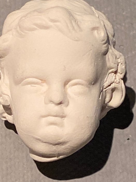 Twee kleine engelenhoofdjes en een roos gemaakt van gips. Bijzonder fijn en mooi uitgevoerd.