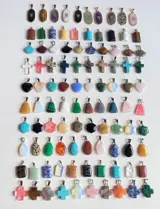 Amethist, harde steen, agaat, labradoriet, jaspis (luipaard, luipaardhuid, rood), tijgeroog, kwarts (roze, kers, rokerig), robijn zoisiet, lapis lazuriet, sodaliet, howliet, opaline, zwarte onyx, malochiet (acryl) , Carneool , Aventurijn (synthetisch) ....