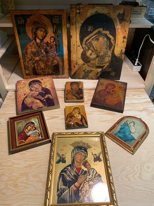 Verzameling van 9 Maria en Jezus iconen (gedrukt)