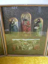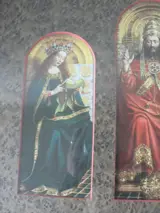 Het betreft hier Jezus als koning, met naast Hem Maria en Jozef.