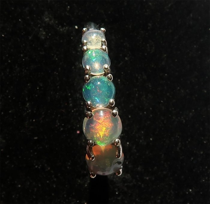 Massief 925 zilveren trouwring versierd met Welo-opalen.