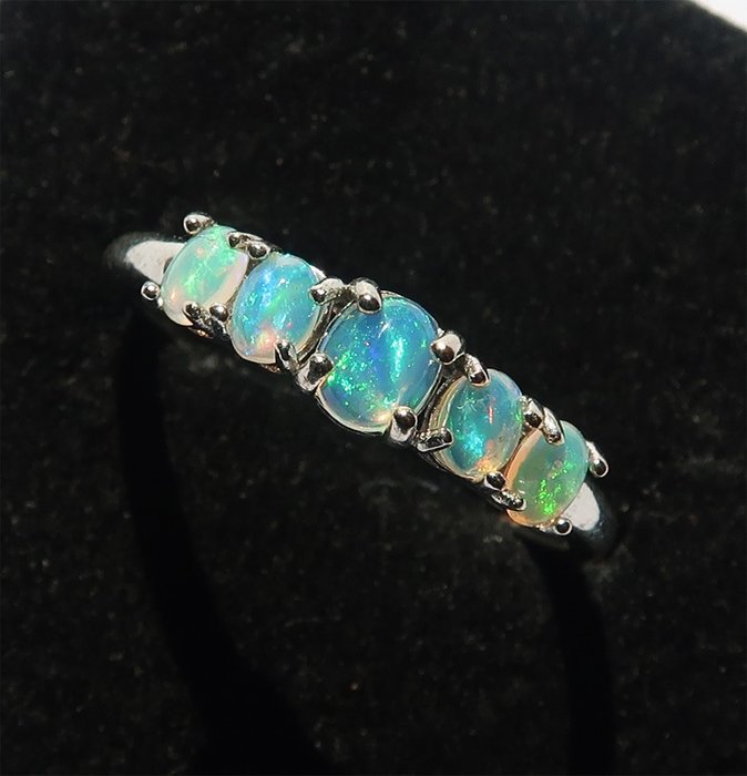 Massief 925 zilveren trouwring versierd met Welo-opalen.