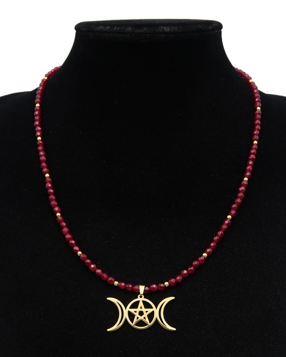 Wicca ketting - dubbele maan en pentagram - de ingewijde.