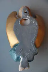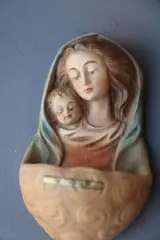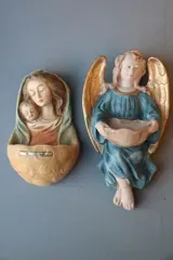 Twee wijwaterbakjes gemaakt van aardewerk in de periode 1950-1970.