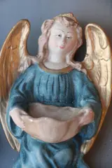 1. engel met gouden vleugels en blauwe tuniek,17cm hoog, redelijke staat