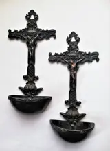 Vooral in de ene is de Christus verguld, in de andere zilver, met INRI op het kruis geschreven.