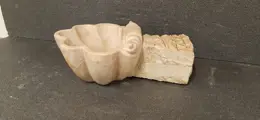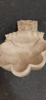 20e-eeuwse marmeren ketel in barokke heroplevingsstijl, bewerkt en geribbeld lichaam. Het leent zich voor tal van instellingen, meet ongeveer 30x20x10 cm, schaal slechts ongeveer 20x20x10 cm en weegt ongeveer 6 kg.