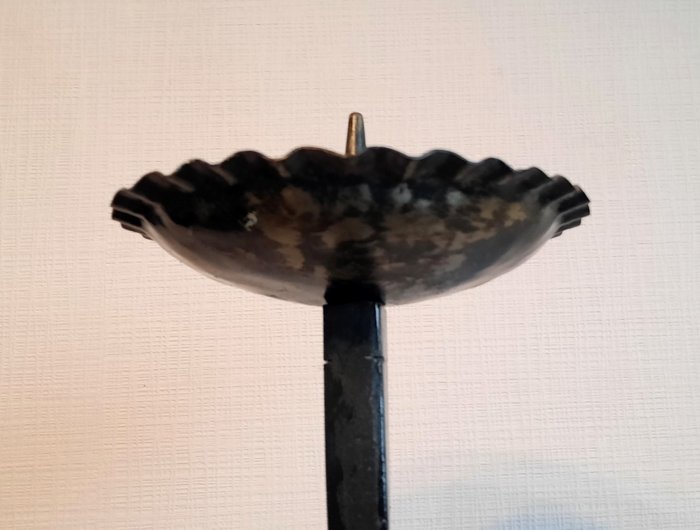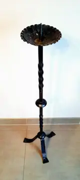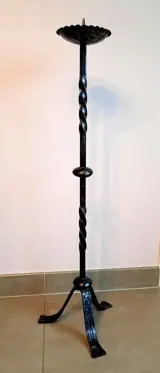 mooie103 cm hoge handgemaakte smeedijzeren vloerkandelaar uit eenkloostertje in België