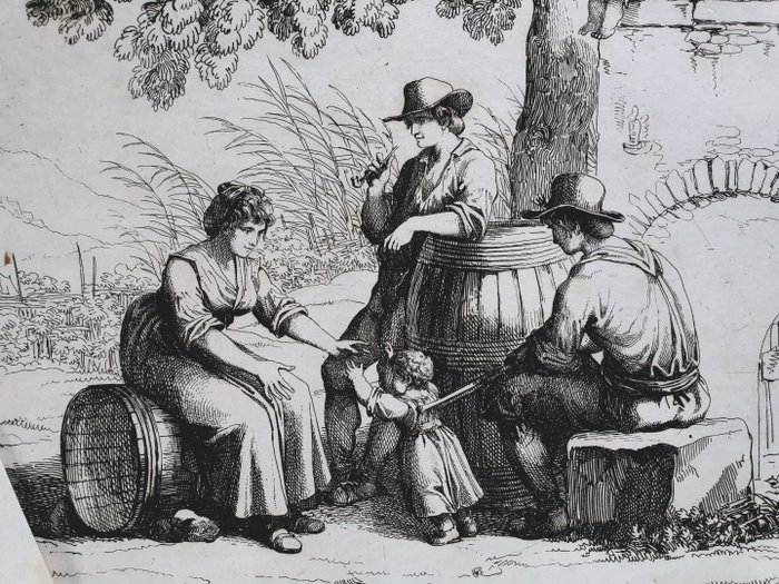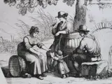 Drie prenten van Bartolomeo Pinelli (1781-1835) van Scenes of the Central Italy Campagna and in Rome. Op velijnpapier.