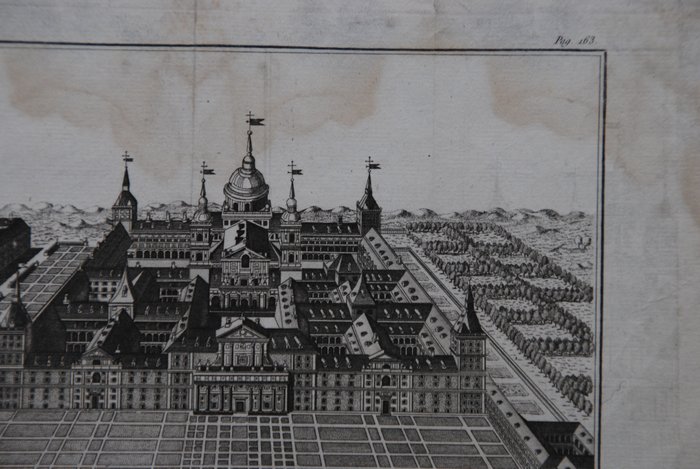 nZicht in vogelvlucht op het beroemde paleis Escorial nabij Madrid in Spanje.nnKopergravure door een onbekende maker, tweede helft 18e eeuw.nnRedelijke conditie. Vouwen vermoedelijk als uitgegeven. Papier met lichte vlekken. De rechterrand van het papier wat rafelig. Verso: blank.nnZie ook de foto's.nnVerzekerde verzending.NULL NULL NULL 2023-02-22 15:11:36 2023-02-22 15:13:53