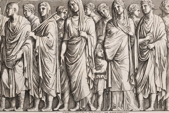 Lot van 6 koperplaatgravures, van "Admiranda Romanarum antiquitatum ac veteris sculpturae vestigia anaglyphico opere elaborata ex mormoreis exemplaribus quae Romae adhuc extant" 1693- Pietro Santi Bartoli (1635-1700)